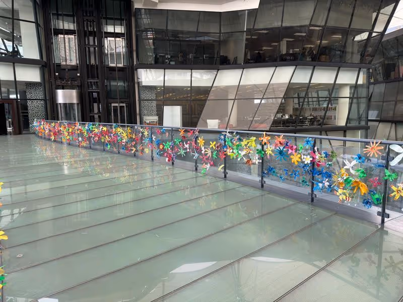 Blossoms for Brother Joe, a floral art installation made from upcycled plastic bottles, was displayed on LASALLE's iconic Sky Bridge during Singapore Art Week in January 2024. The blossoms were created by members of the public and the LASALLE community, symbolising the vibrant diversity of the ecosystem of arts and creative practitioners who have graduated from LASALLE since its founding in 1984.